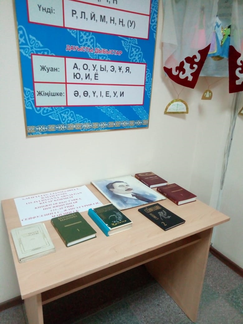 2. 2019 жылғы 3 қыркүйекте С.Сейфуллин, І.Жансүгірұлы, Б.Майлиннің 125 жылдығына арналған кітап көрмесі өткізілді.