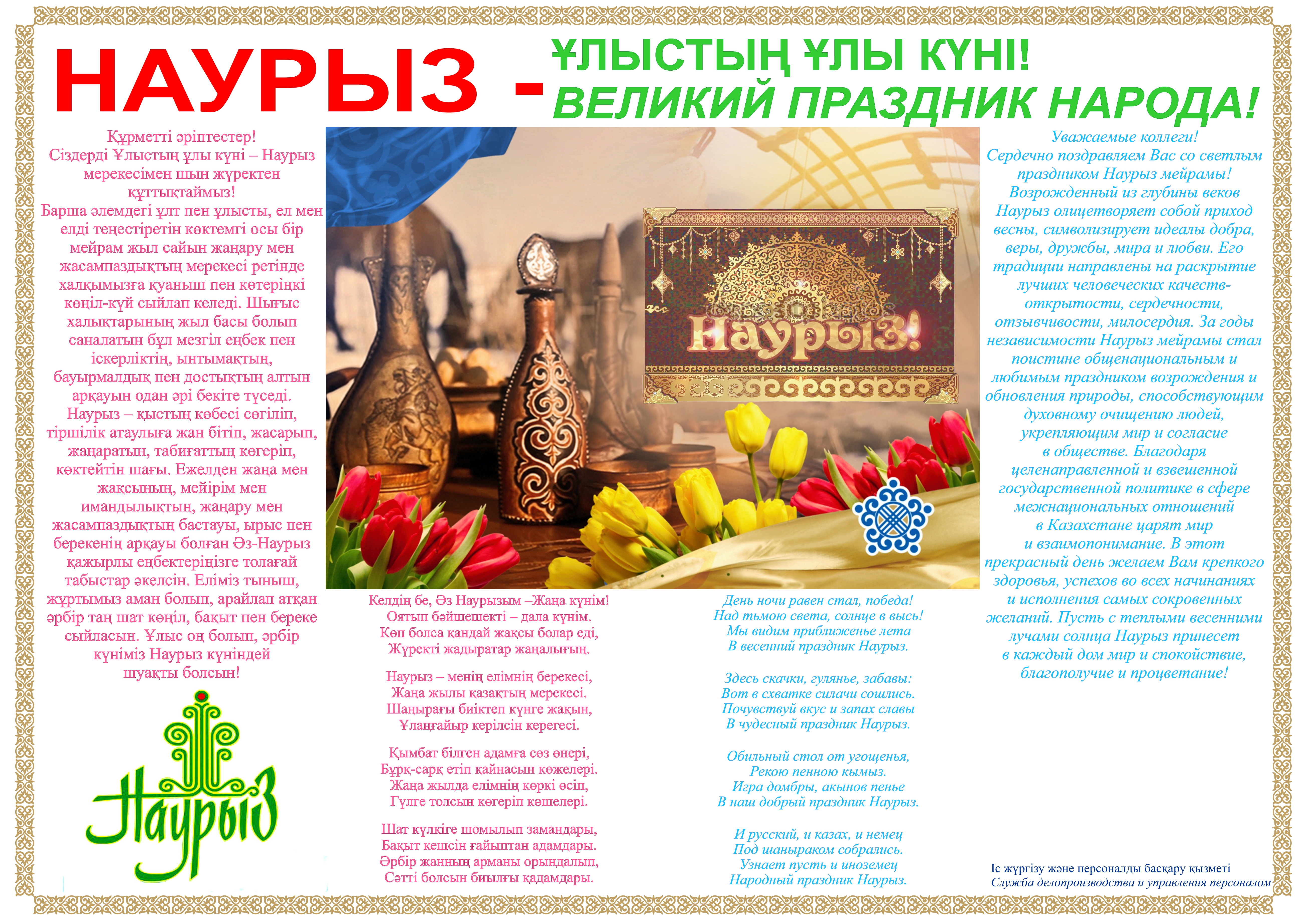 Іс жүргізу және персоналды басқару қызметі «Наурыз – Ұлыстың Ұлы күні» тақырыбында қабырға газетін шығарды.