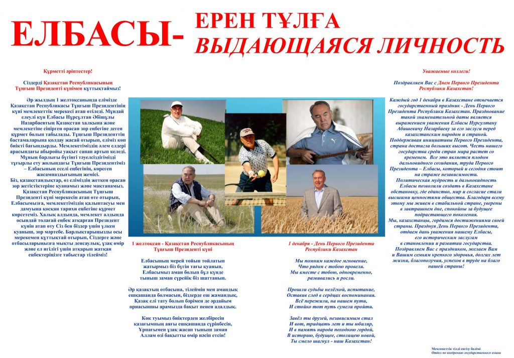 1) Мемлекеттік тілді енгізу бөлімі «Елбасы – ерен тұлға» тақырыбында қабырға газетін шығарды.