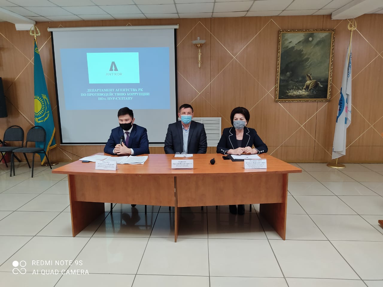 «Астана-Теплотранзит» АҚ-та (бұдан әрі мәтін бойынша – Қоғам) сыбайлас жемқорлыққа қарсы іс-қимыл бойынша тиісті шаралар қабылдау, сыбайлас жемқорлық көріністерінің алдын алу және ескерту бойынша ішкі бақылауды күшейту үшін ағымдағы жылдың 17 қарашасында Қоғам жұмыскерлері үшін ҚР Сыбайлас жемқорлыққа қарсы іс-қимыл агенттігінің Нұр-Сұлтан қаласы бойынша департаменті басшысының бірінші орынбасары Жазира Жақсылыққызы Жылқышиевамен «Сыбайлас жемқорлыққа қарсы заңнамадағы жаңа енгізілімдер, парасаттылық идеологиясын қалыптастыру туралы» тақырыбында және «Астана» халықаралық қаржы орталығының Басқарма төрағасының кеңесшісі Асхат Сұлтанбекұлы Қожымовпен «Сыбайлас жемқорлыққа қарсы күрестің халықаралық тәжірибесі» тақырыбында дәріс өткізді және осы саладағы заңнаманың талаптарын түсіндірді. Дәріс соңында қойылған сұрақтарға толық жауап берілді.