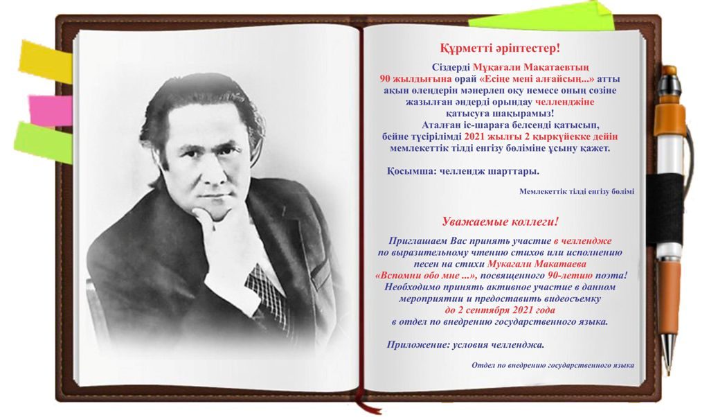 Онлайн челлендж по выразительному чтению и исполнению песен на стихи Мукагали Макатаева в честь 90-летию поэта